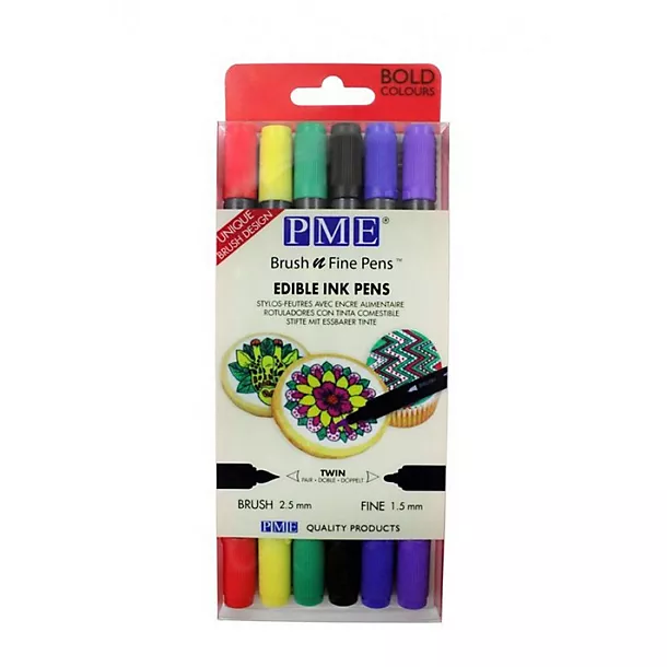 6 PME Brush N Fine Edible Ink Pens with Bold Colours