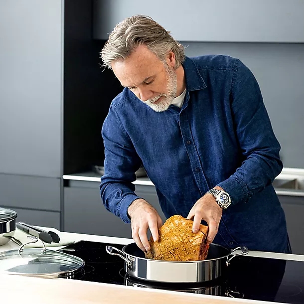 Circulon say their SteelShield Clad C-Series range is built for life, and each pan comes with their lifetime manufacturer’s guarantee. With a little care, your hybrid pans will last and last and last. The SteelShield rings perform best when hot, so preheat your pan for a minute or two before adding oil. The thick bases retain heat, so you can cook at lower settings than you might be used to, and if any food does get stuck on when you’re searing or caramelising, Circulon recommend adding a splash of water when the pan is still hot, loosening browned bits and making them even easier to clean away.