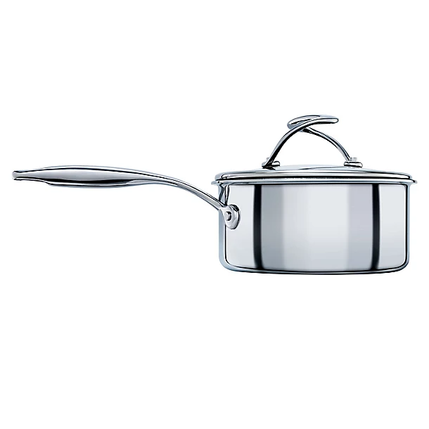 Three premium glass-lidded saucepans – 16cm (1.4 litre), 18cm (1.9 litre) and 20cm (2.8 litre).