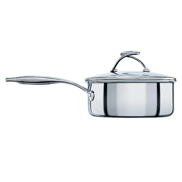 Constructed to last, their tri-ply clad bodies have a responsive pure aluminium core for exceptional temperature control, bonded together with two layers of stainless steel all the way around for unrivalled durability. And with hybrid SteelShield non-stick interiors and highly-polished, mirror-finished exteriors, they look as smart as they cook.