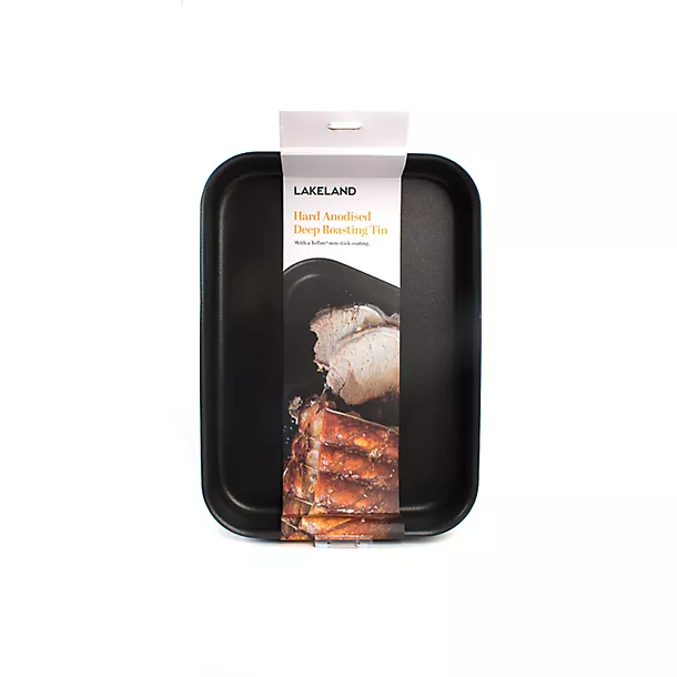 A really roomy roasting tin, with space for a large roast with potatoes or veg spread around it, this Hard Anodised Roasting Tin is exceptionally strong to withstand high temperatures on the hob or in the oven, time and again. It’s coated in scratch resistant non-stick to make it easy to clean and lightweight, to make handling your joint a little easier than in a heavyweight traditional tin.