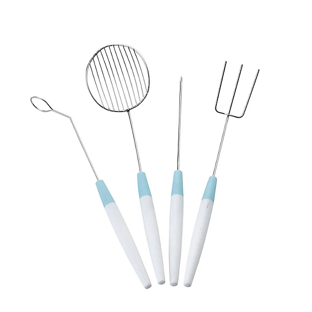 - Decorating tools – Use the 3-prong dipping fork, spear, slotted spoon, drizzling spoon and scoop to create patterns and add toppings to make each one of your confections unique.