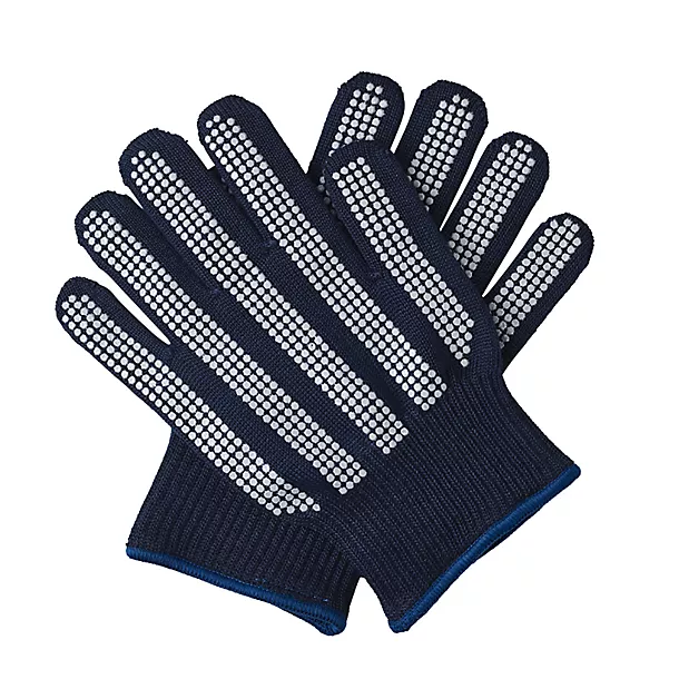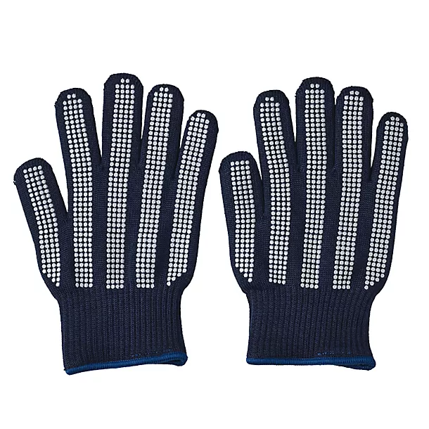 If you don’t usually associate nimble fingers with oven gloves, our Heat Shield Gloves will change your mind. Fitting on either hand just like ordinary gloves – rather than the more usual mitten with thumb design – they’re knitted in soft, flexible Meta-Aramid, the same material used to protect firefighters from intense heat. And for extra grip and protection they have silicone pads on the fingers and palms (on both sides).