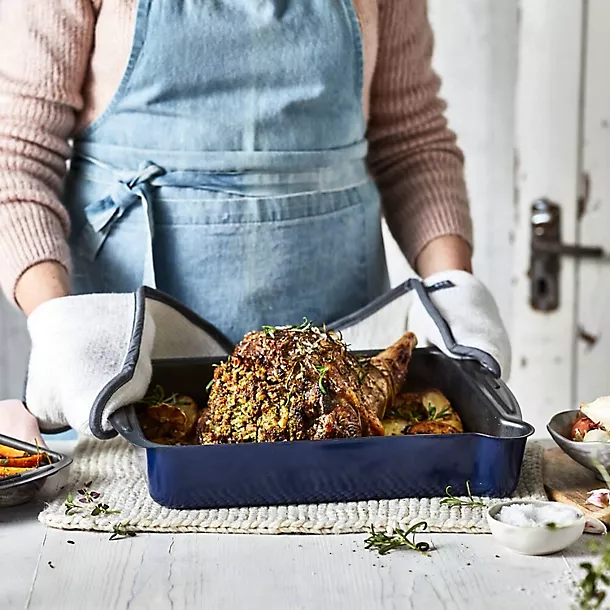 This superb quality roasting tin will not only cook your Sunday joint to perfection – and the vegetables to go with it – but also offers even cooking, superior food release and can go in the dishwasher for easy clean-up.