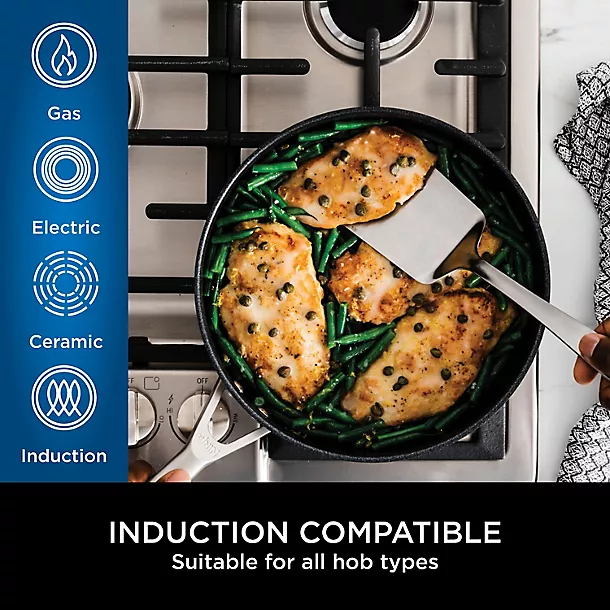 The stainless-steel handles are comfortable to hold, and make moving your pan from the hob to the oven a breeze. The pans are oven-safe and can withstand temperatures of up to 260°C. Suitable for all hob types, including induction, gas, electric and ceramic, this set is the true all-rounder for kitchen beginners and seasoned chefs alike.