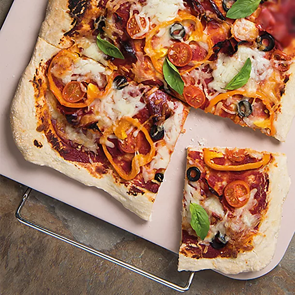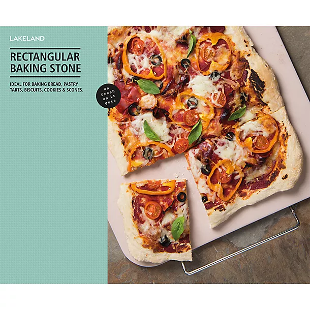 Give your home-baked bread and pizza the professional touch with this Rectangular Baking Stone which will help turn any standard oven into a pizza oven, so you can make authentic Italian-style home-made pizzas, pastries and rustic breads without the expense of building an outdoor oven in your garden. Made from stoneware, it conducts heat evenly across its whole surface and cooks all sorts of things brilliantly – we’ve even included a non-pizza recipe to inspire you…